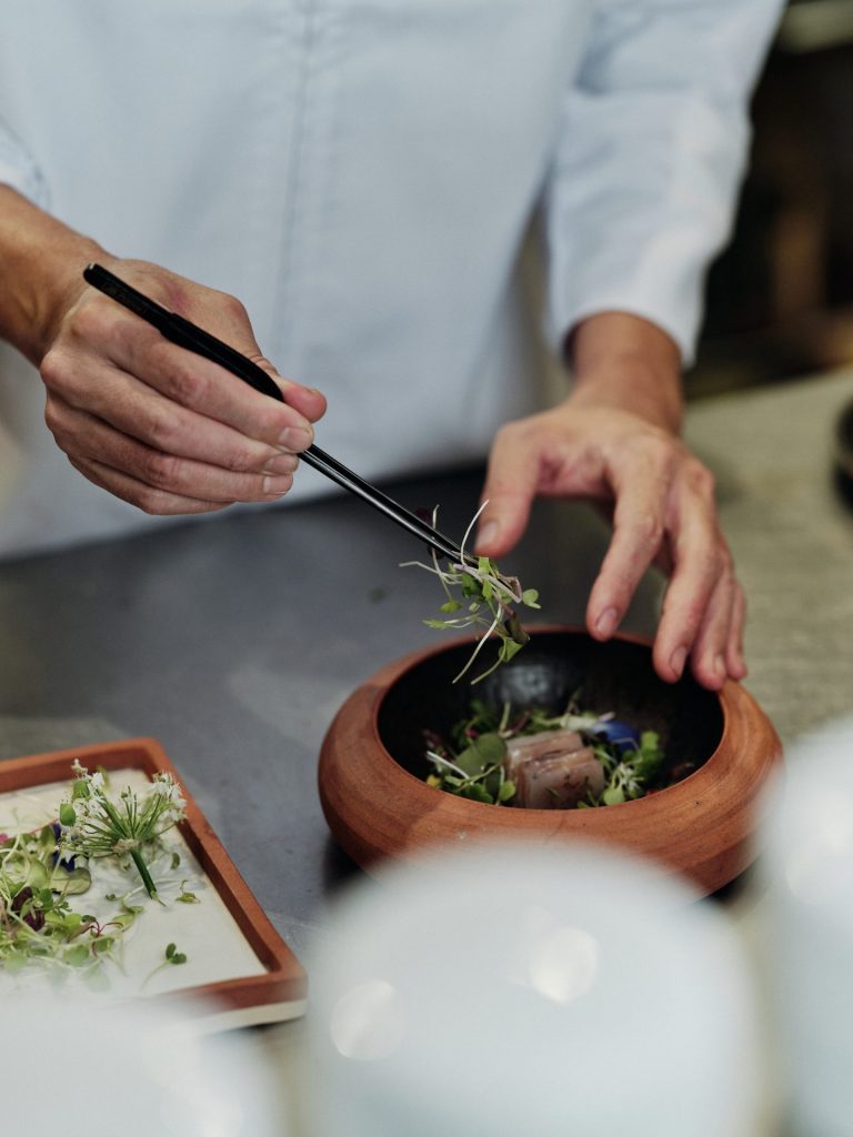 料理は、自ら育てた野菜や近隣農園の恵み、その日に収穫された食材のみで構成され、決まったメニューは存在しません。素材が語る季節の物語に耳を澄ませるように、日々の料理が生まれています。